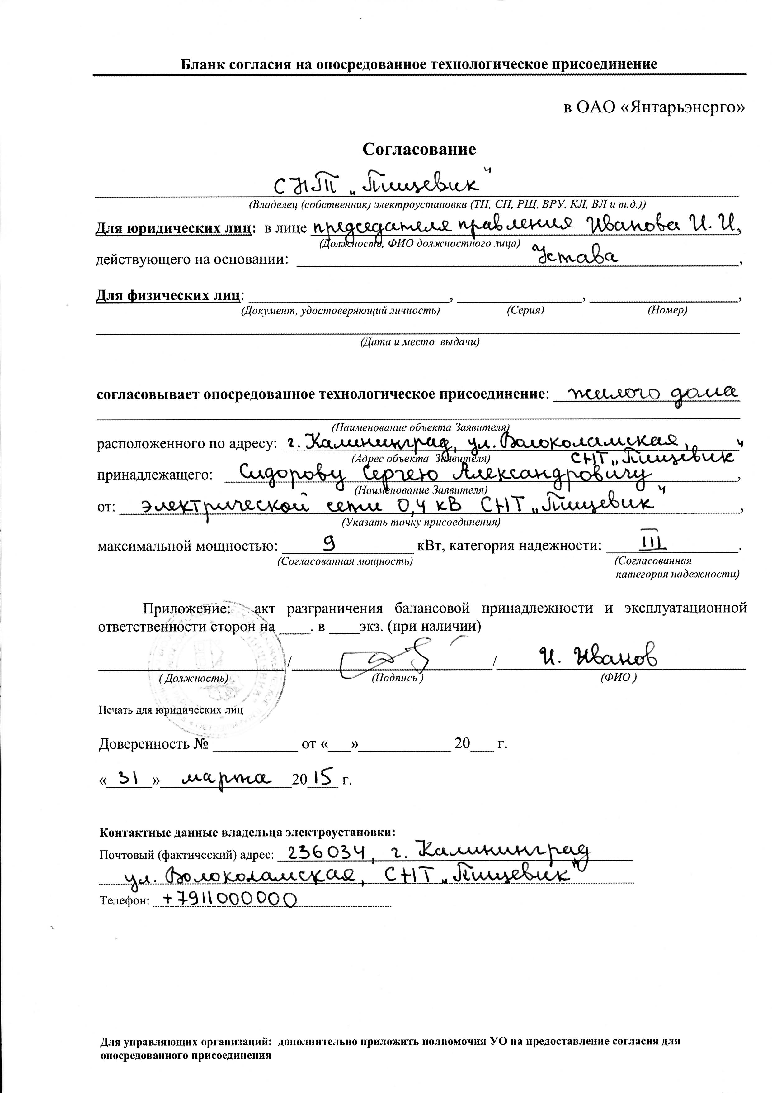 Командору: Ну вот и разобрались. А на деле, на практике, получается так: Янтарьэнерго не возражает против ТП любого гражданина к своим сетям через ОЭСХ СНТ "Пищевик" при условии согласования (согласия) СНТ на такое ТП. Какой из 3-х случаев применяется в этой ситуации, это уже другой вопрос.